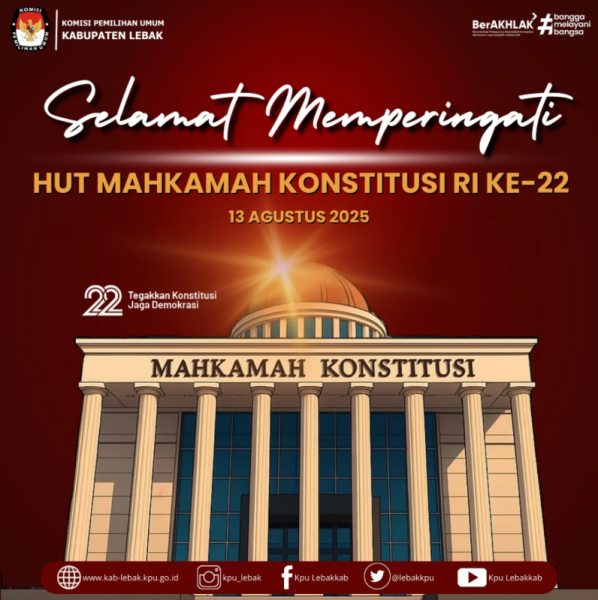#TemanPemilih, Keluarga KPU Kabupaten Lebak mengucapkan selamat memperingati HUT Mahkamah Konstitusi RI ke-22.