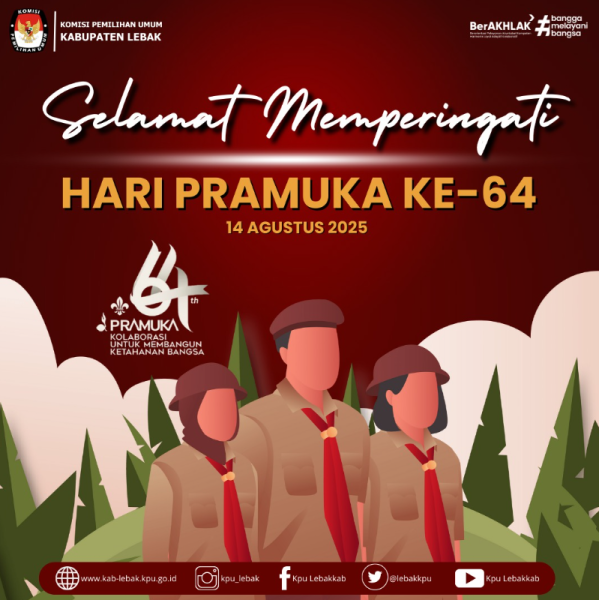 #TemanPemilih, Keluarga Komisi Pemilihan Umum Kabupaten Lebak mengucapkan Selamat Memperingati Hari Pramuka ke-64, 14 Agustus 2025.
