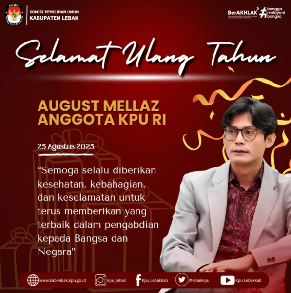 #TemanPemilih, KPU Kabupaten Lebak mengucapkan Selamat Ulang Tahun Bpk. August Mellaz - Anggota KPU RI.