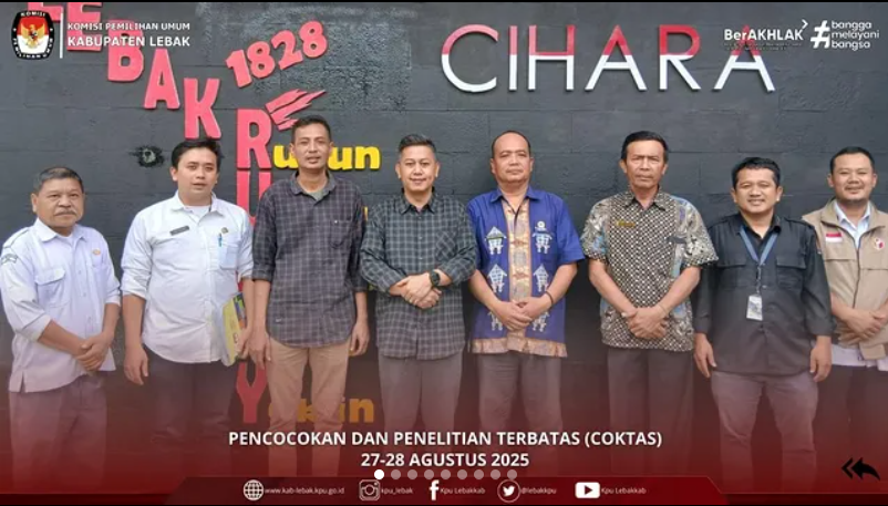 Pada 27-28 Agustus 2025, KPU Kabupaten Lebak terjun ke 28 Kecamatan di Kabupaten Lebak. Bukan untuk jalan-jalan ya! Kami sedang melakukan Pencocokan dan Penelitian terbatas (COKTAS) untuk memastikan data pemilih sudah akurat.