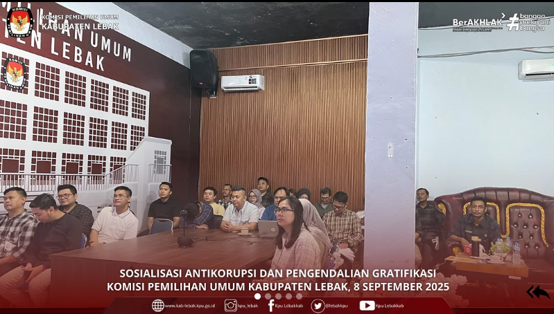 #TemanPemilih, Hari ini, KPU Kabupaten Lebak mengikuti Sosialisasi Antikorupsi dan Pengendalian Gratifikasi sebagai bagian dari upaya menanamkan nilai-nilai integritas dalam setiap proses kerja.