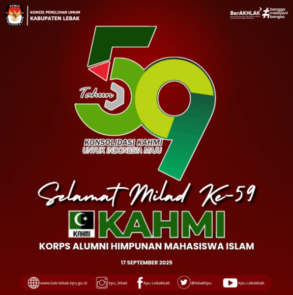 #TemanPemilih, KPU Kabupaten Lebak mengucapkan Selamat Milad ke-59 Korps Alumni Himpunan Mahasiswa Islam. (Rabu, 17 September 2025)