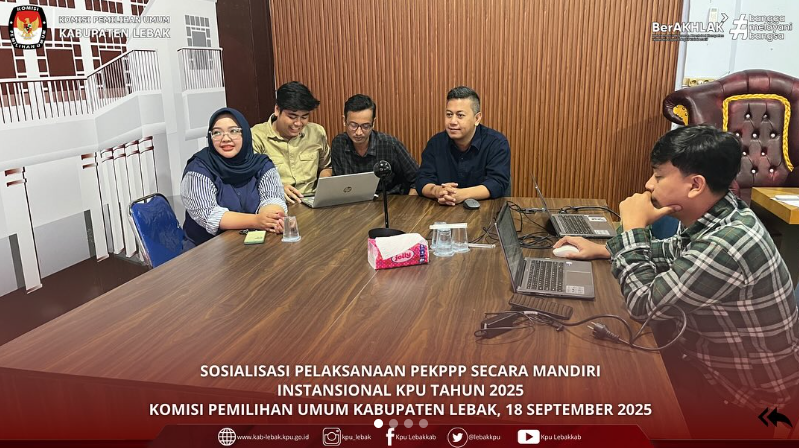 #TemanPemilih, Hari ini (18 September 2025) KPU Kabupaten Lebak hadir secara daring melalui zoom meeting mengikuti kegiatan Sosialisasi Pelaksanaan PEKPPP secara Mandiri Instansional KPU Tahun 2025 yang diselenggarakan oleh KPU RI