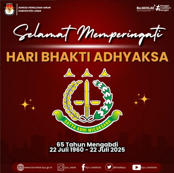 #TemanPemilih, segenap keluarga KPU Kabupaten Lebak mengucapakan selamat memperingati hari Bhakti Adhyaksa yg ke 65.