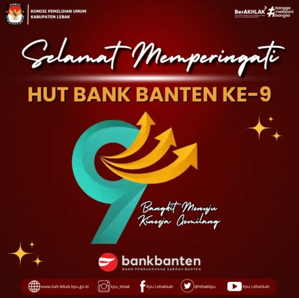 #TemanPemilih, KPU Kabupaten Lebak mengucapkan selamat memperingati HUT Bank Banten ke-9.