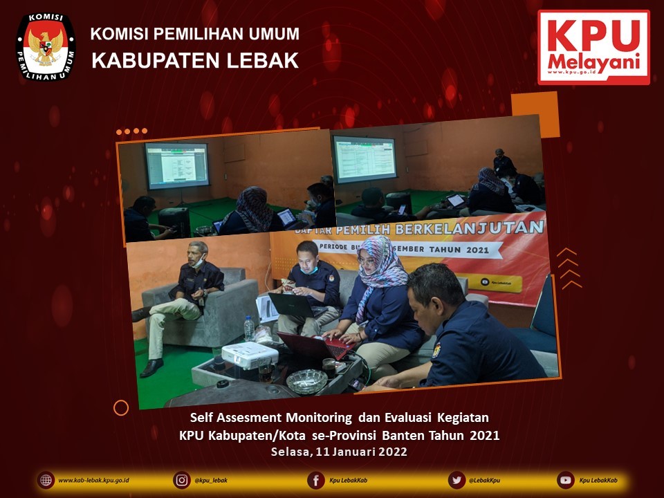 KPU Lebak mengikuti acara Self Assesment Monitoring dan Evaluasi Pelaksanaan Kegiatan KPU Kabupaten/Kota se-Provinsi Banten oleh KPU Provinsi Banten yang dilaksanakan pada hari Selasa 11 Januari 2022 secara daring melalui zoom meeting
