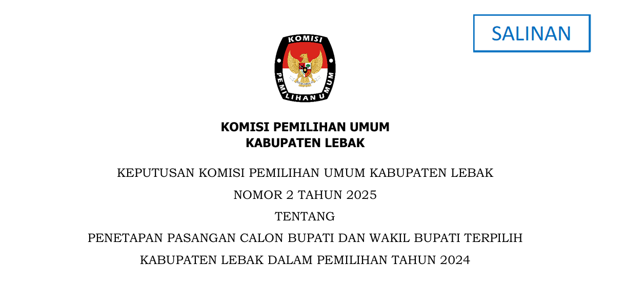 PENETAPAN PASANGAN CALON BUPATI DAN WAKIL BUPATI TERPILIH KABUPATEN LEBAK DALAM PEMILIHAN TAHUN 2024
