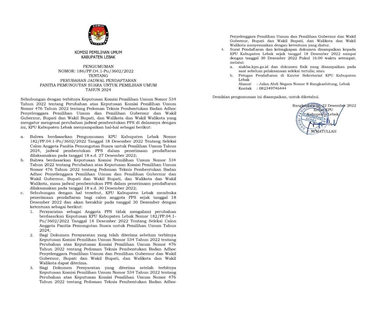 PENGUMUMAN PERUBAHAN SELEKSI PPS PEMILU TAHUN 2024