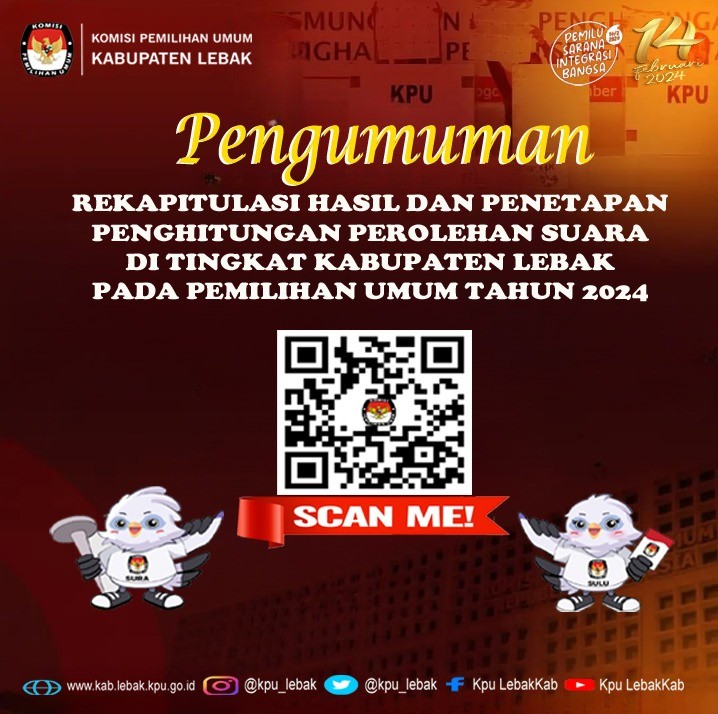 PENGUMUMAN REKAPITULASI HASIL DAN PENETAPAN PENGHITUNGAN PEROLEHAN SUARA DI TINGKAT KABUPATEN LEBAK PADA PEMILIHAN UMUM TAHUN 2024