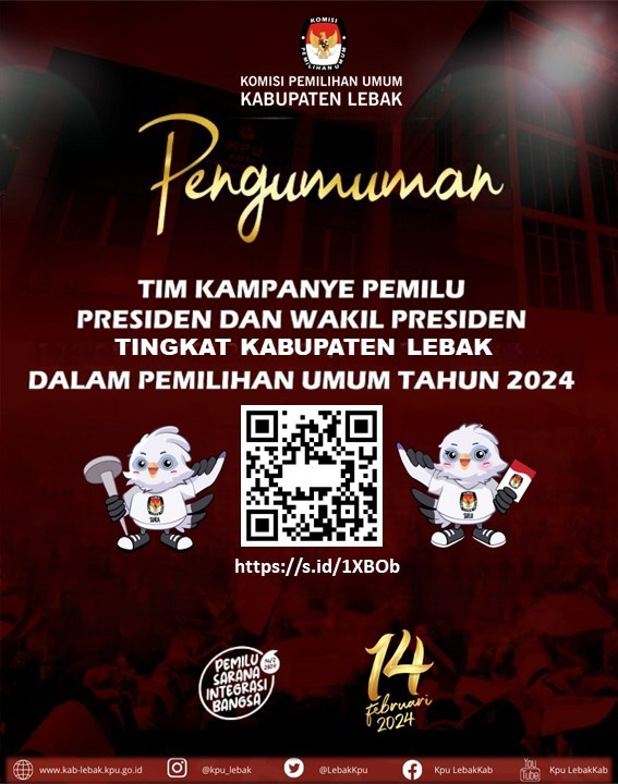PENGUMUMAN TIM KAMPANYE PEMILU PRESIDEN DAN WAKIL PRESIDEN TINGKAT KABUPATEN LEBAK DALAM PEMILIHAN UMUM TAHUN 2024