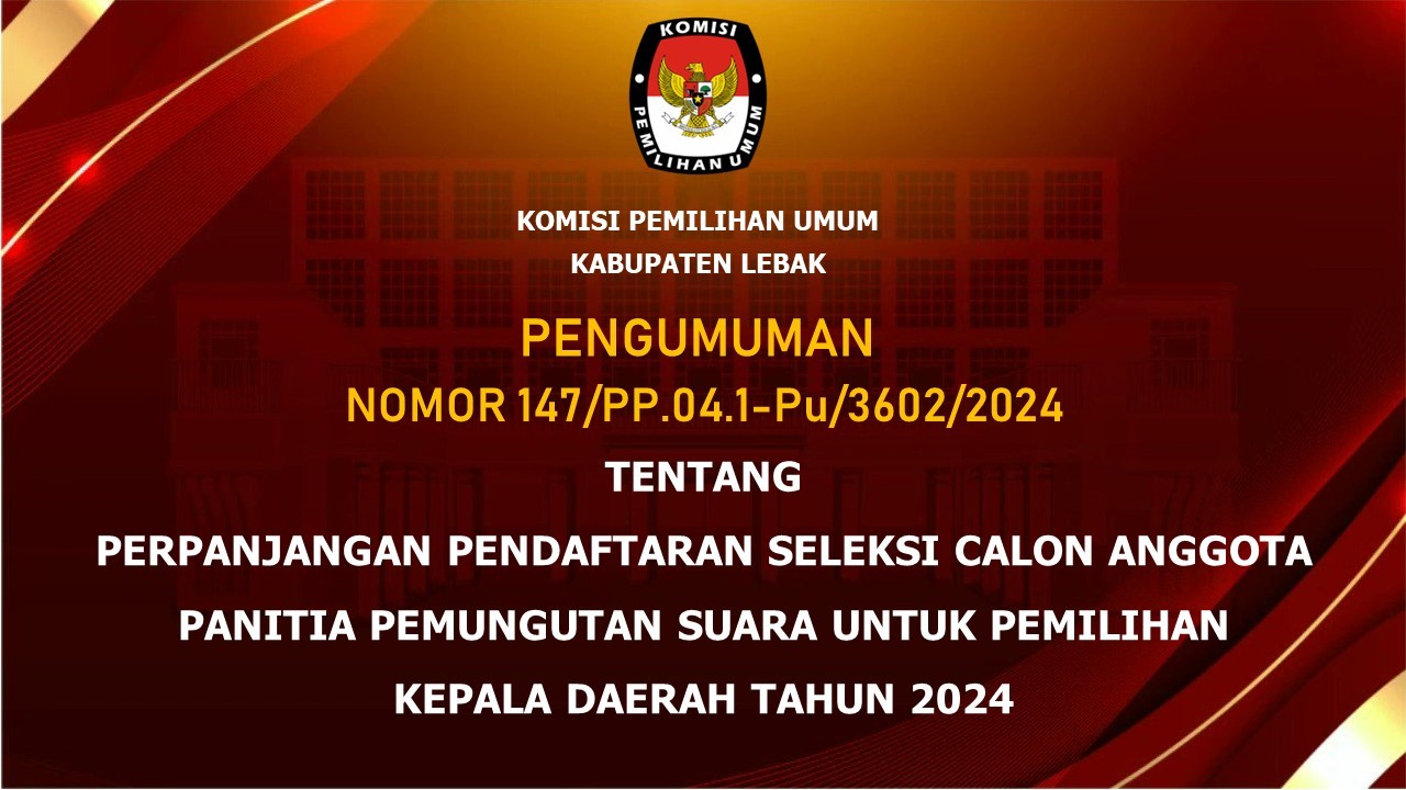 PERPANJANGAN PENDAFTARAN SELEKSI CALON ANGGOTA PANITIA PEMUNGUTAN SUARA UNTUK PEMILIHAN KEPALA DAERAH TAHUN 2024