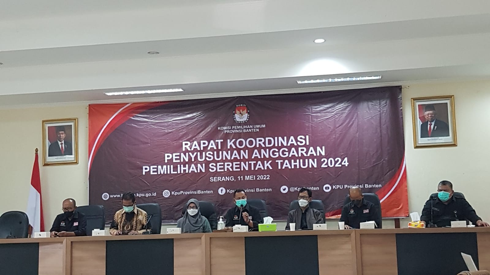 Komisi Pemilihan Umum Kabupaten Lebak menghadiri kegiatan Rapat Koordinasi Penyusunan Anggaran Pemilihan Serentak Tahun 2024 di aula KPU Provinsi Banten, Rabu (11/05/2022)