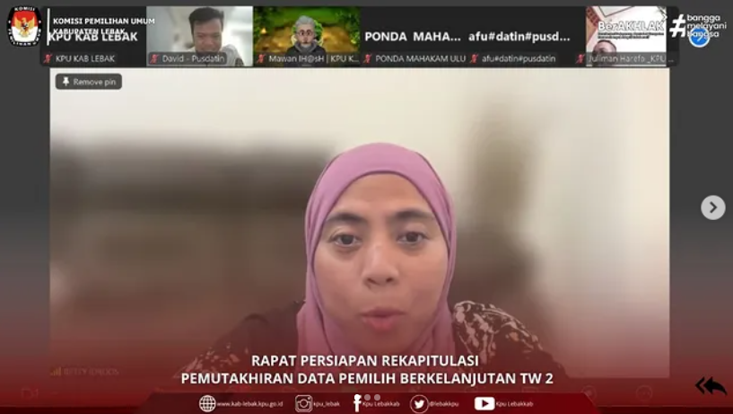 #TemanPemilih, Malam ini (Senin, 30 Juni 2025) KPU Kabupaten Lebak menghadiri dan menyimak kegiatan Rapat Persiapan Rekapitulasi Pemutakhiran Data Pemilih Berkelanjutan (PDPB) Triwulan 2 yang digelar oleh KPU RI via Zoom Meeting.