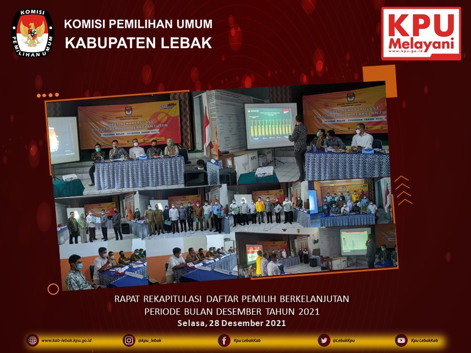 Komisi Pemilihan Umum (KPU) Kabupaten Lebak melaksanakan Rapat Rekapitulasi Daftar Pemilih Berkelanjutan (DPB) Periode bulan Desember Tahun 2021, bertempat di Aula Kantor KPU Kabupaten Lebak pada hari Selasa 28 Desember 2021.