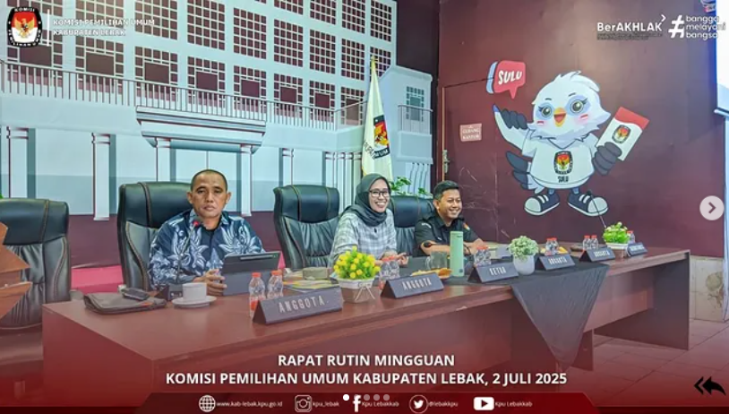 #TemanPemilih, (Rabu, 2 Juli 2025) KPU Kabupaten Lebak melaksanakan Rapat Rutin Mingguan. Kegiatan Rapat Rutin Mingguan ini dilaksanakan rutin oleh KPU Kabupaten Lebak guna mempererat hubungan antar Subbag serta pelaporan kegiatan-kegiatan yang dilaksanakan oleh Subbag.