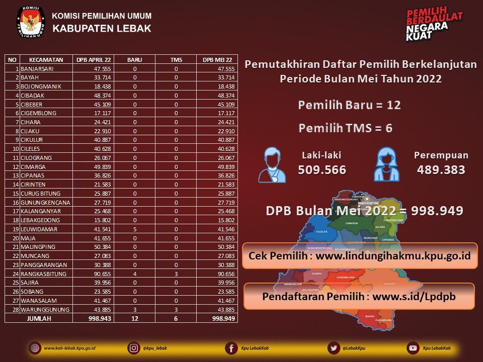 REKAPITULASI DAFTAR PEMILIH BERKELANJUTAN KPU KABUPATEN LEBAK PERIODE BULAN MEI TAHUN 2022