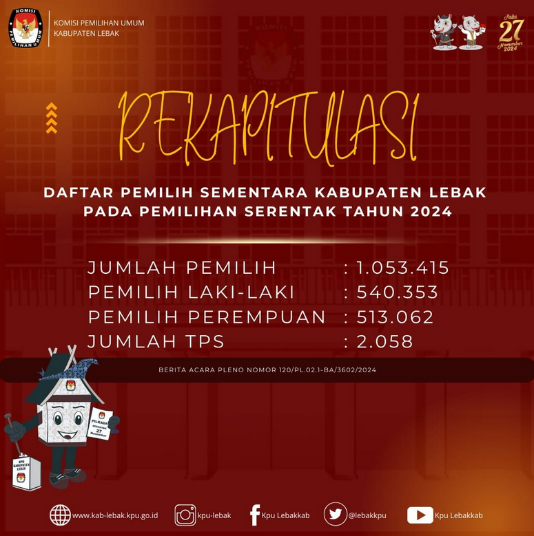REKAPITULASI DAFTAR PEMILIH SEMENTARA PEMILIHAN GUBERNUR DAN WAKIL GUBERNUR BANTEN PEMILIHAN BIPATI DAN WAKIL BUPATI KABUPATEN LEBAK TAHUN 2024