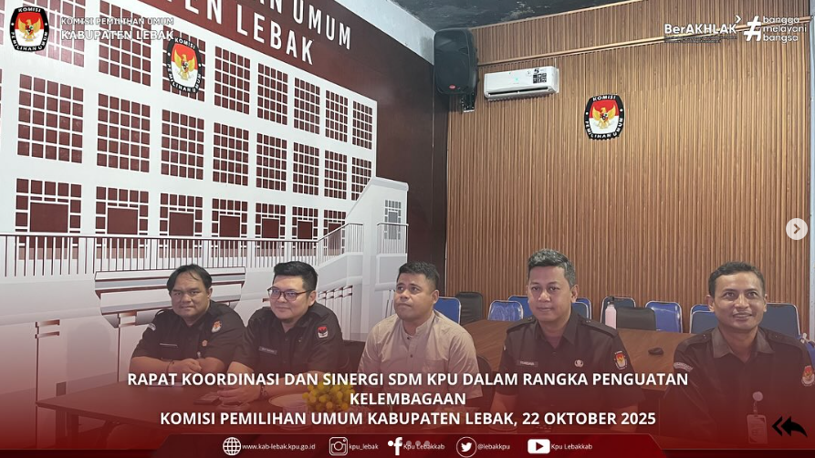 #TemanPemilih, Hari ini (Selasa, 21 Oktober 2025) KPU Kabupaten Lebak Rapat Koordinassi Pengawasan dalam rangka Peningkatan dan Penguatan Kinerja Pengawasan di Lingkungan KPU secara daring melalui zoom meeting yang di selenggarakan oleh KPU RI.